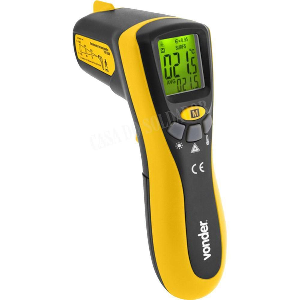 Indicado para medições de temperatura em geral, sem necessidade de encostar o termômetro no local ou no equipamento a ser medido. Utilizado para medições de temperatura de superfícies, permitindo rápida localização de problemas (ausência de lubrificação, sobrecarga, curto-circuito, equipamentos com problemas de alinhamento ou aquecimento excessivo em máquinas, motores, equipamentos eletrônicos, caixas de distribuição elétrica, entre outros) reduzindo o tempo de diagnóstico e trabalho. Quanto maior a distância do objeto em relação ao termômetro, maior será o diâmetro de abertura do termômetro infravermelho. O medidor possui uma resolução óptica (razão entre a distância e o diâmetro) de 10:1, ou seja, para 300 mm de distância a área de medição é de 30 mm, distância de 900 mm a área de medição é de 90 mm e distância de 1.500 mm a área de medição é de 150 mm. Para um resultado satisfatório, o objeto a ser medido deve ser pelo menos de 1,5 a 2 vezes maior que a amplitude do campo de medição.